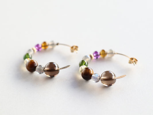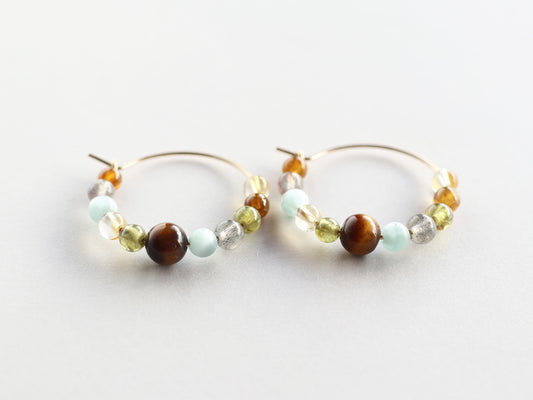 ◆ItoMe Stone◆14KGFフープピアス、 タイガーアイ、グリーンムーンストーン PN:IPS-220