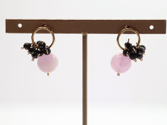 ◆ItoMe Stone◆ピアス*クンツァイト,ブラックスピネルのサークルホストピアスPN:IPS-255