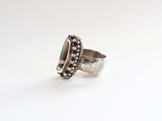 アンティークジービーズ(チベッタン天珠)カービング指輪PN:GB-R05