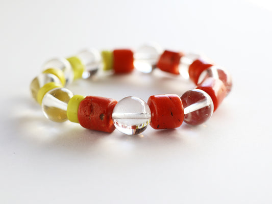 ガネーシュヒマール産ヒマラヤ水晶、アンティーク・ナガランドビーズ ブレスレットPN:HCB-111