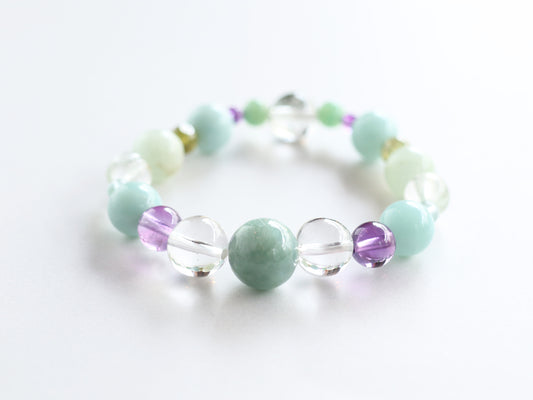 ビルマ産翡翠12mmとアマゾナイト、ヒマラヤ水晶のブレスレットPN:HCB-102