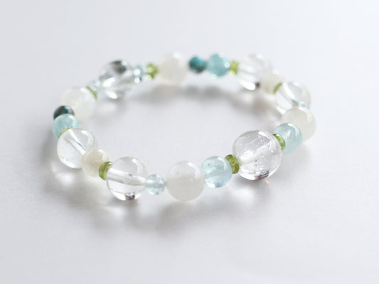 レインボームーンストーンとアクアマリンのヒマラヤ水晶ブレスレットPN:HCB-103