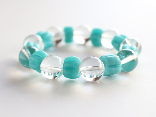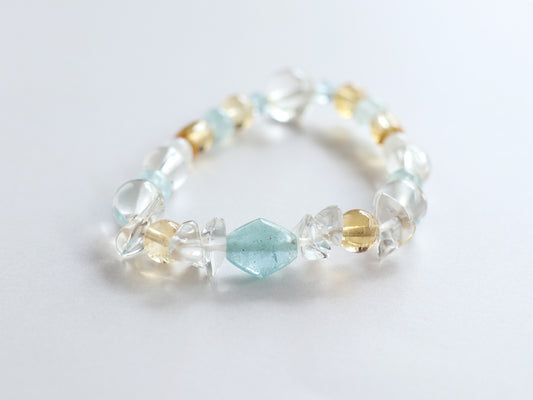 カンチェンジュンガ産アクアマリンとヒマラヤ水晶ブレスレットPN:HCB-104