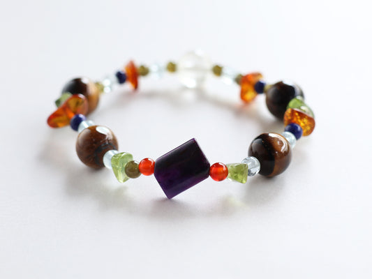 琥珀とヒマラヤゴールデンルチル水晶ブレスレットPN:HCB-115