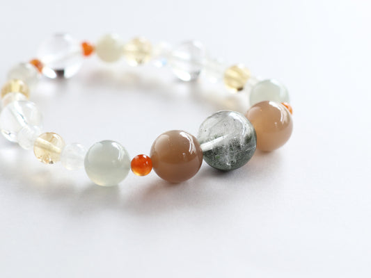 ヒマラヤガーデンクォーツ、ブラウンムーンストーンのブレスレットPN:HCB-88