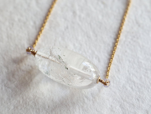 ガネーシュヒマール産オバール型ヒマラヤ水晶と14KGFチェーンネックレス