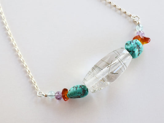 ガネーシュヒマール産ルチル水晶、アンティークターコイズのシルバーチェーンネックレス