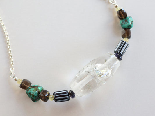 ガネーシュヒマール産水晶、サファイヤ、ターコイズのシルバーチェーンネックレス