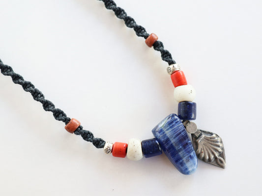 ジャジャルコット産カイヤナイトとアンティークビーズの編みネックレス