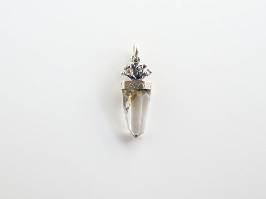 ガネーシュヒマール産ヒマラヤ水晶原石 シードクリスタル、ガーデンクォーツ シルバーペンダントPN:HCS-03