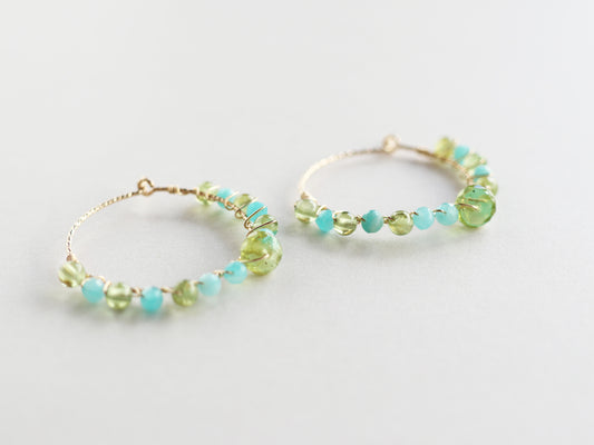 ◆ItoMe Stone◆14KGFフープピアス ペリドット、アマゾナイトPN:IPS-214