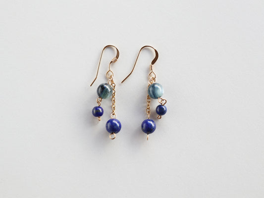 ◆ItoMe Stone◆ピアス*ラピスラズリ、カイヤナイトのチェーンピアス PN:IPS-233