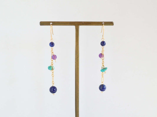 ◆ItoMe Stone◆ピアス*ラピスラズリ、アメジスト、ターコイズのチェーンロングピアス