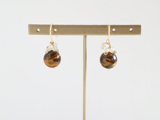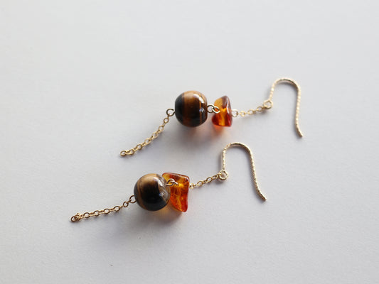 ◆ItoMe Stone◆ピアス*タイガーアイ、アンバー,14KGFチェーン,PN:IPS-141