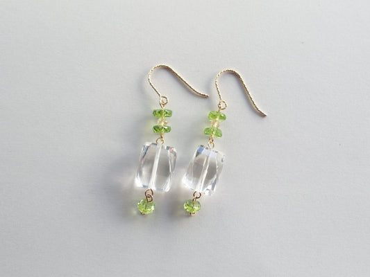 ◆ItoMe Stone◆ピアス*ツイスト水晶、ペリドットピアスPN:IPS-144