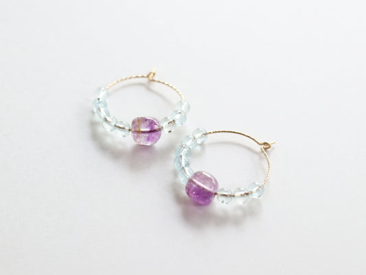 ◆ItoMe Stone◆14KGFフープピアス、スーパーセブン、アクアマリンPN:IPS-166