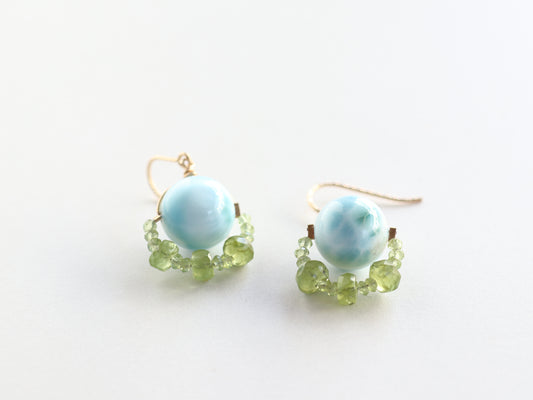 ◆ItoMe Stone◆ピアス*12mm大玉ラリマー、ペリドット PN:IPS-034
