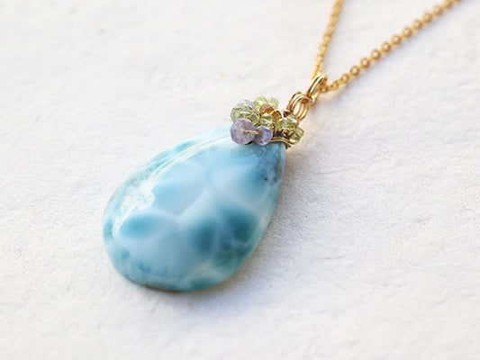 (14KGFワイヤーワーク)ラリマーカボションペンダントトップPN:LRM-046