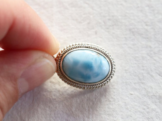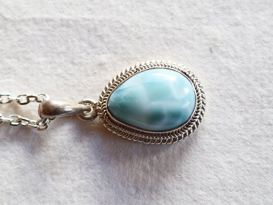 ラリマーカボション、ティアドロップ型ペンダントトップ