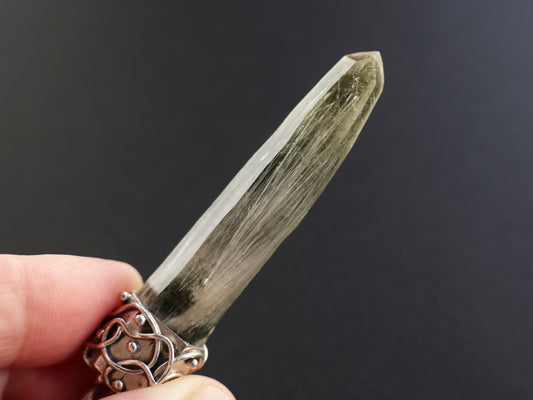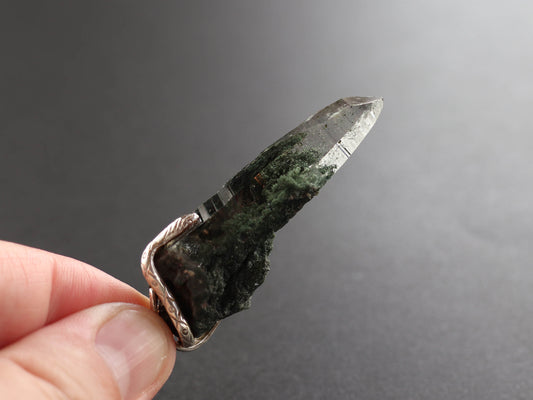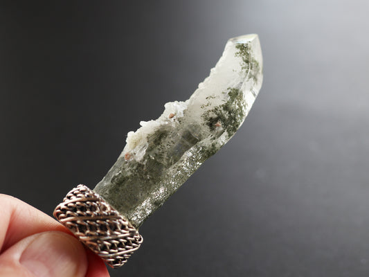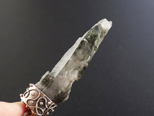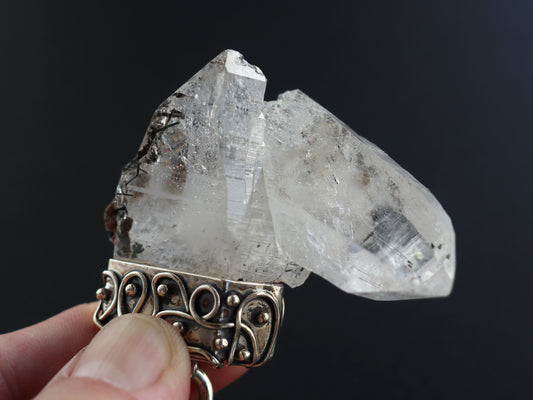 (チェーンデザイン)【特大】ヒマラヤガネーシュヒマール産原石 曲がり水晶、クロライト、ペンダントトップPN:HCS-C28