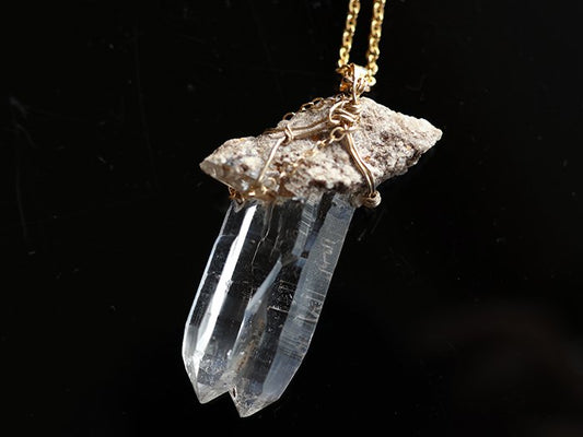 (14KGFワイヤーワーク)ガネーシュヒマール産ヒマラヤ水晶、ツインソウル原石ペンダントトップ