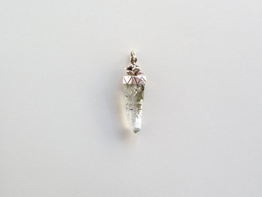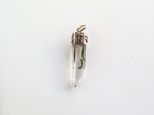(梵字デザイン)ガネーシュヒマール産クロライト入り(ガーデンクォーツ)ヒマラヤ水晶ペンダントトップPN:HCS-B3