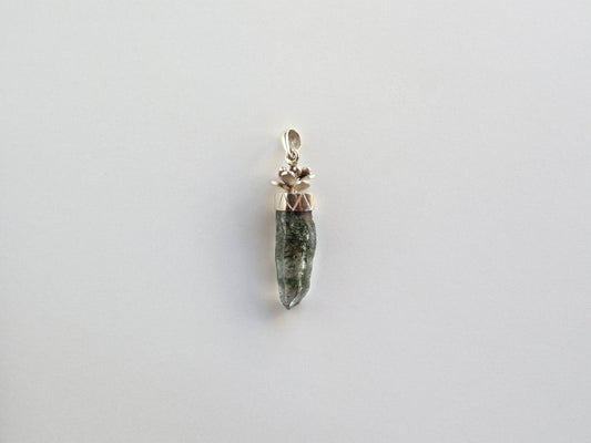 (ナーガデザイン)ヒマラヤガネーシュヒマール産原石グリーン水晶ロングクリスタルペンダントトップPN:HCS-S19