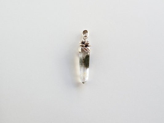 (フラワー)ガネーシュヒマール産クロライトいり、ヒマラヤ水晶ペンダントトップPN:HCS-TF21