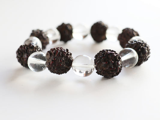 【メンズサイズ】アンティークルドラクシャ、ガネーシュヒマール産ヒマラヤ水晶 ブレスレット PN:RDB-43