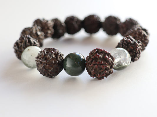 【メンズサイズ】アンティークルドラクシャ、ガネーシュヒマール産ヒマラヤクロライト水晶 ブレスレット PN:RDB-44