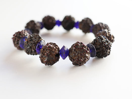 【メンズサイズ】アンティークルドラクシャ、アンティークブルービーズブレスレット PN:RDB-41