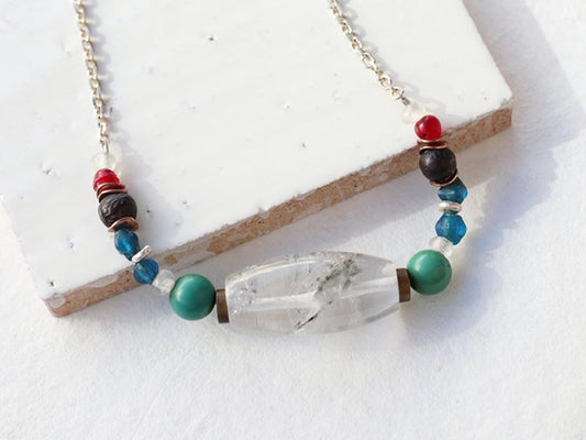 【Special piece】ガネーシュヒマール産オーバル型ヒマラヤ水晶&アンティークビーズシルバーネックレスPN:HCN-23
