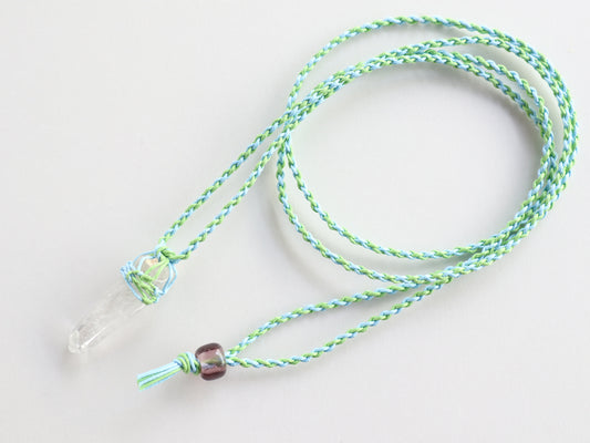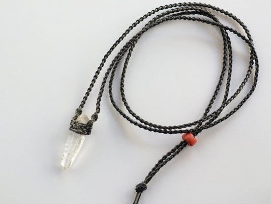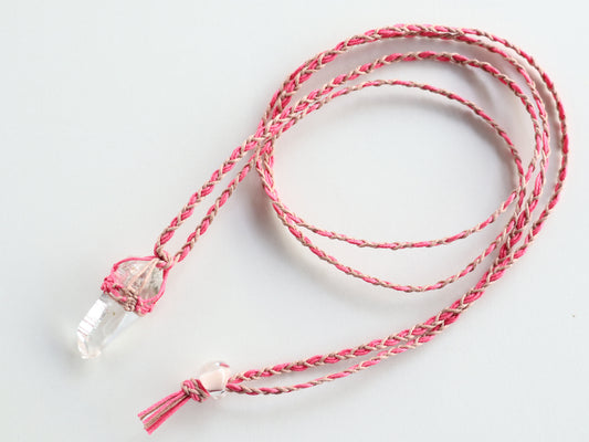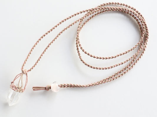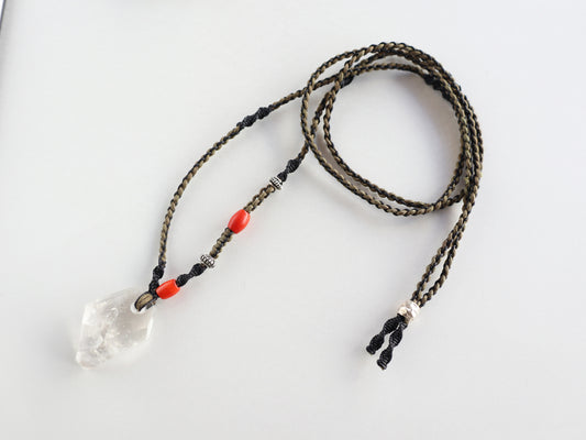 ガネーシュヒマール産水晶原石のシードクリスタル、マクラメネックレスPN:HCN43