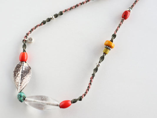 ガネーシュヒマール産正20面体ヒマラヤ水晶のビーズデザインマクラメネックレスPN:HCN-48