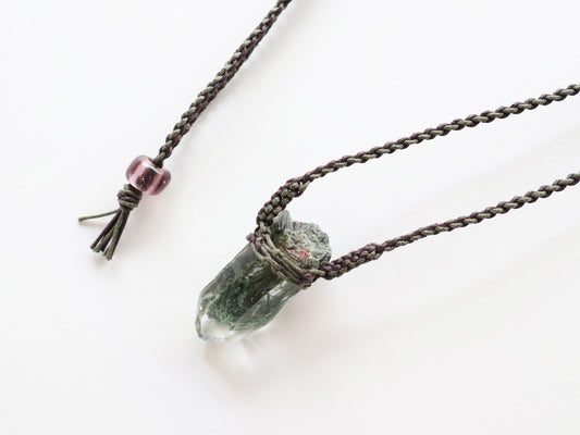 ガネーシュヒマール産クロライト入りガーデン、ルチル水晶マクラメネックレス PN:HCN-62